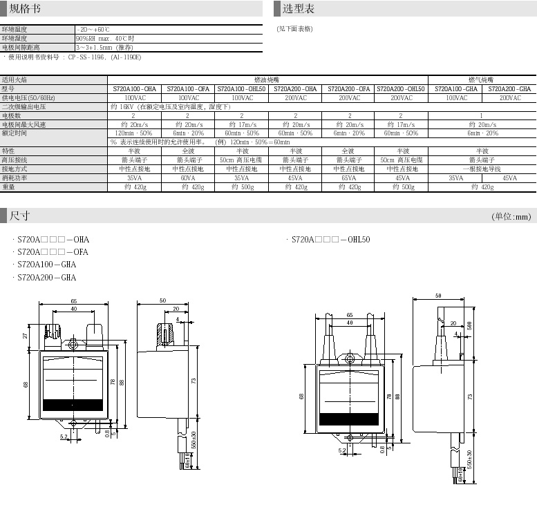 S720A是一种高性能的点火变压器,用来触发燃油、燃气烧嘴的